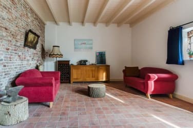 De huiskamer heeft vier openslaande deuren die uitzicht en toegang geven tot de tuin. De huiskamer heeft een oppervlakte van 52 vierkante meter en veel lichtinval door de tuindeuren op het zuidoosten. Een houtkachel in een hoek van de huiskamer zorgt niet alleen voor verwarming, maar ook voor een gemoedelijke sfeer.
