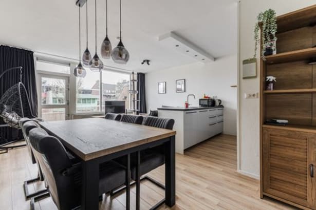 Het appartement is netjes afgewerkt en netjes onderhouden. Via de centrale hal zijn alle vertrekken bereikbaar, wat zorgt voor een fijne en overzichtelijke leefruimte. Het gehele appartement voorzien van een stijlvolle houtlook laminaatvloer, wat samen bijdraagt aan de strakke en moderne uitstraling. In de hal vindt u een garderobe en een toilet met fonteintje, afgewerkt met strak tegelwerk voor een verzorgde en eigentijdse look. De lichte woonkamer is gelegen aan de achterzijde van het appartement en biedt dankzij de grote ramen een aangename hoeveelheid daglicht. Vanuit de woonkamer stapt u zo het fijne balkon op — dé plek om even tot rust te komen, een goed boek te lezen of te genieten van een glas wijn met uitzicht. Dankzij de ligging op het oosten geniet u hier ’s ochtends van de eerste zonnestralen en een heerlijke start van de dag. Kortom: een comfortabel en sfeervol thuis met een buitenruimte die uitnodigt tot ontspannen.