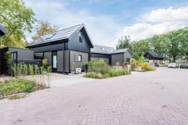 en in de kleur 'steen' geschilderd. Het huis heeft vloerverwarming op de begane grond, en wordt verwarmd/gekoeld met een airco met buitenunit. Er is een doorstroomverwarmer voor het warme water. Het dak bestaat uit 52 zonnepanelen voor 7280 kwh. De woning is daarmee vrijwel energieneutraal.