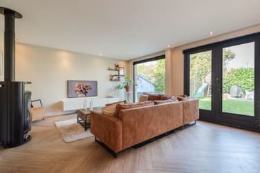 Bij binnenkomst valt direct de lichte en ruimtelijke opzet op. De sfeervolle woonkamer biedt volop mogelijkheden voor een grote zithoek en een royale eettafel. De fraaie stenen visgraatvloer met vloerverwarming zorgt voor een luxe uitstraling.