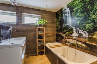 • Badkamer met ligbad, inloopdouche, dubbele wastafel en toilet