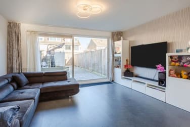 De woning verwelkomt je via een mooi vernieuwde voortuin. Binnen vind je een hal met een moderne toiletruimte. De lichte woonkamer is recent gestuct en geschilderd, wat zorgt voor een frisse en uitnodigende sfeer. Aan de voorzijde bevindt zich de volledig gerenoveerde keuken met moderne apparatuur en veel werkruimte—perfect voor kookliefhebbers.
