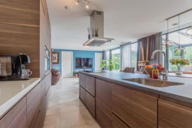 * Niet alleen is er vloerverwarming in alle ruimtes, maar ook vloerkoeling, wat zorgt voor een aangename temperatuur in de zomer zonder veel energie te verbruiken.