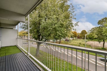 Het Oostelijk gelegen balkon loopt over de volle breedte van de woning en biedt de perfecte plek om buiten te zitten – ’s ochtends met een kop koffie in de zon, en later op de dag juist een fijne schaduwplek.