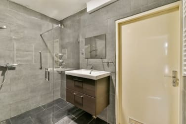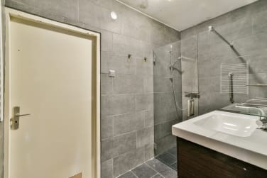Het appartement telt drie ruime slaapkamers, waarvan één met toegang tot het balkon. De badkamer is fris en praktisch ingedeeld met een ruime douche, een wastafelmeubel en een handdoekenradiator. Naast de badkamer bevindt zich een apart toilet met fonteintje.