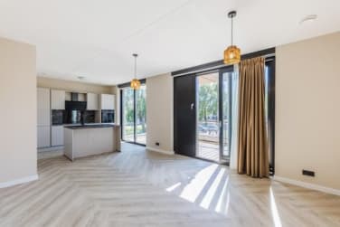 Door de hele woning licht een pvc visgraat vloer.