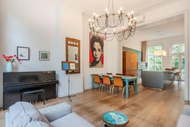 On the edge of the greenery, in the beloved Plantage neighbourhood, sits this exceptional canal house from 1865. With 330 m² of living space, this is a home that adapts to your life — whether you have a large (blended) family, dream of a home office, or are looking for a property suited to dual occupancy or a B&B.