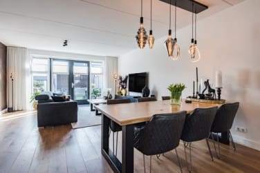 Deze woning is aan de achterzijde uitgebouwd, waardoor er een heerlijke, ruime woonkamer is ontstaan met veel lichtinval en openslaande deuren naar de tuin. De combinatie van de eikenhouten vloer en vloerverwarming op de begane grond zorgt voor een warm en comfortabel geheel. Aan de voorzijde bevindt zich de moderne open keuken met kookeiland, voorzien van diverse inbouwapparatuur (Siemens), ideaal voor wie van koken en gezelligheid houdt.