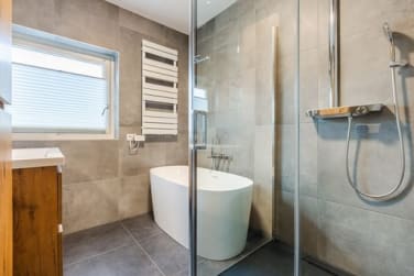 De badkamer is in 2024 volledig vernieuwd en straalt luxe en comfort uit. Je vindt hier een royale inloopdouche, een vrijstaand bad, een dubbele wastafel met opbergruimte, een moderne elektrische handdoekradiator en vloerverwarming. Het toilet bevindt zich apart van de badkamer, wat het leefcomfort voor het hele gezin verder vergroot.