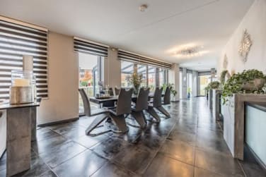 Pluspunten: enorme leefruimte (ca. 17 m diep), 5 slaapkamers, twee serres, uitzonderlijk veel buitenruimte, wonen aan het water met vrij uitzicht, 2 eigen parkeerplaatsen, label A, lage maandlastenindicatie door zonnepanelen, topligging bij tram en uitvalswegen.