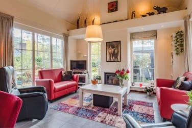 Buiten geniet je van een prachtig aangelegde tuin met volop privacy en een fraai groen uitzicht. Dankzij meerdere terrassen kun je de hele dag door genieten van de zon – van de eerste ochtendstralen tot de warme avondzon. De buitenhaard maakt het buitenleven compleet, ook op koelere avonden.