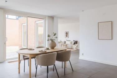 De basis is top: strakke wanden en een plavuizen vloer met vloerverwarming. Dankzij de speelse Z-indeling creëer je hier moeiteloos je droominterieur met een aparte leefkeuken en een sfeervolle living. Aan de voorzijde vind je de lichte, neutrale keuken, voorzien van inbouwapparatuur en een fijn uitzicht door de brede ramen.