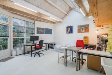 Achter de hoofdwoning is rond 1995 een aan de woning gebouwd atelier geplaatst (ca. 30 m2) met een schitterend uitzicht op de tuin. Het atelier is verwarmd en van water en licht voorzien en beschikt over dubbele beglazing. Het atelier is toegankelijk via de bijkeuken van de hoofdwoning en heeft een eigen deur naar de tuin. Naast een geweldig uitzicht op de tuin beschikt deze ruimte over een rij tuimel-dakramen die een heel bijzonder lichteffect geven vanuit het Noorden.