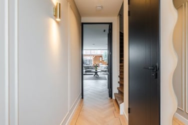 De gehele begane grond is afgewerkt met een stijlvolle visgraat pvc-vloer, luxe binnendeuren én vloerverwarming met koelfunctie voor optimaal wooncomfort in elk seizoen.