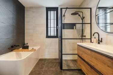 Op de eerste verdieping bevinden zich drie goed ingedeelde slaapkamers en een luxe badkamer. Deze badkamer is een echte eyecatcher en voelt als een privéspa, dankzij het vrijstaande ligbad, de royale inloopdouche, het dubbele wastafelmeubel, designkranen, hoogwaardige materialen en vloerverwarming voor extra comfort. Hier begin en eindig je de dag in alle rust en luxe.