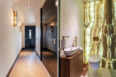 De royale woonkamer is een echte eyecatcher, afgewerkt met exclusief marmer epoxy uit Iran, doorgetrokken in zowel de living als het toilet, wat zorgt voor een unieke en luxe uitstraling. De open design keuken is uitgerust met hoogwaardige Gaggenau-apparatuur en vormt het hart van de woning.