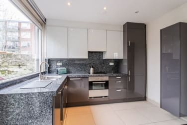 Aan de achterzijde van de woning ligt de openkeuken welke o.a. is voorzien van een 4-pits inductie kookplaat, afzuigkap, oven, vaatwasser en een ruime koel-vriescombinatie. Daarnaast is er meer dan genoeg kastruimte voor al het keukengerei.