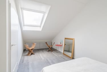 Een mooie open ruimte die zich perfect leent als slaapkamer, werkruimte of hobbykamer. Daarnaast vind je hier de technische ruimte met aansluiting voor wasmachine en droger.