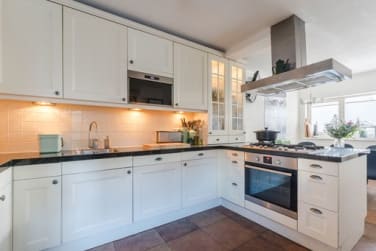 Vanuit de woonkamer stapt u via twee schuifdeuren de ruime, landelijke woonkeuken met luxe natuurstenen (granieten) werkblad in. De keuken is voorzien van vloerverwarming, boiler (2022), moderne inbouwapparatuur, kookeiland en eethoek.