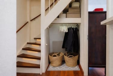 Hal/entree met garderobe en trap naar eerste verdieping.