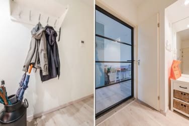 Entree. Hal met meterkast en bergkast alwaar de HR Cv-installatie (huur) is gesitueerd.