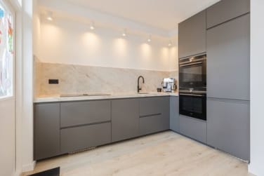 Aan de achterzijde bevindt zich de eyecatcher van de woning: de luxe open keuken. Deze recent geplaatste keuken is uitgevoerd met een prachtig Taj Mahal werkblad en voorzien van hoogwaardige Siemens Studioline inbouwapparatuur. Denk aan een inductiekookplaat met geïntegreerde afzuiging, dubbele (stoom) oven, Quooker en een complete opstelling die zowel esthetisch als functioneel op hoog niveau is. Een perfecte plek voor kookliefhebbers en gezellige avonden met familie en vrienden.