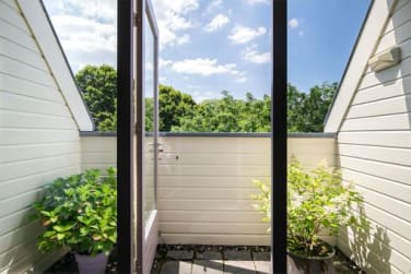 De loggia sluit aan op de woonkamer, en biedt de heerlijke middagzon tot zonsondergang, grenzend aan het Van der Werfpark.