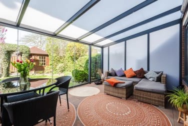 Vanuit de woonkamer bereikt u de prachtige tuinkamer, een heerlijke extra leefruimte waar u het gehele jaar comfortabel buiten kunt zitten.