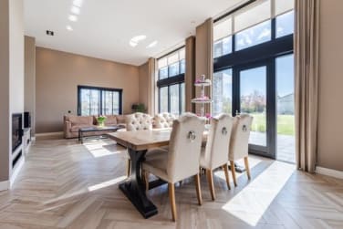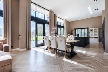 De luxe open keuken is het hart van de woning. Uitgerust met hoogwaardige inbouwapparatuur en een modern design. Dankzij de open verbinding met de woonkamer blijf je altijd in contact met je gezelschap.