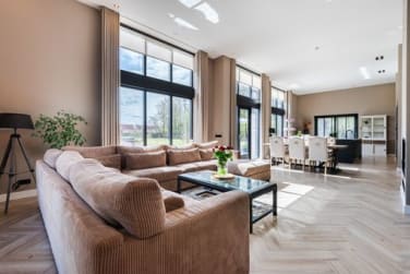 Bij binnenkomst ervaar je direct de ruimtelijke opzet van deze woning. De royale woonkamer heeft dankzij de grote raampartijen veel natuurlijk lichtinval en een prachtig zicht op de groene omgeving. Voor de koudere dagen biedt de sfeervolle houtkachel een heerlijke centrale plek in huis, terwijl de gehele woning is voorzien van comfortabele vloerverwarming.