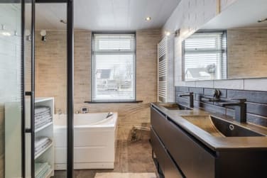 Hier vindt u ook meteen de pas gerenoveerde badkamer. Compleet uitgevoerd met 2-persoons jacuzzi, regendouche en dubbele wastafel. De ruimte is efficiënt ingericht en biedt alles wat u nodig heeft voor het dagelijkse comfort.