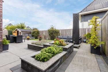 De tuin is fraai aangelegd en optimaal georiënteerd op de zon. De verschillende terrassen nodigen uit tot ontspanning, perfect voor lange zomeravonden, barbecues of gewoon om in alle rust van te genieten. Verder zijn er voorzieningen zoals een elektra & water voorziening in de tuin, verlichting, elektrisch aangedreven zonnescherm en een houten berging in de tuin welke extra opslagruimte biedt voor tuinmeubilair en gereedschap. De tuin is aan weerszijden afgesloten met een fraai hekwerk om ongenodigde gasten buiten te houden. Tenslotte is het huis voorzien van een camera- beveiligingssysteem voor uw veiligheid.