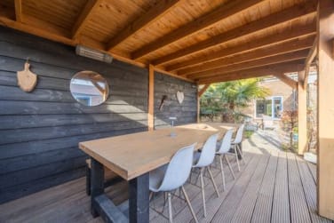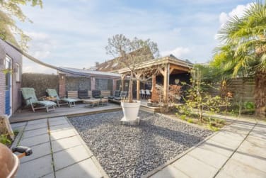 De woning beschikt over een ruime tuin met een in 2022 gerealiseerde overkapping voorzien van 6 zonnepanelen – een heerlijke plek om het hele jaar door buiten te zitten.
