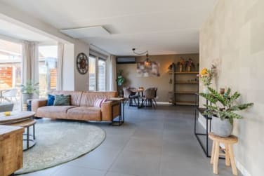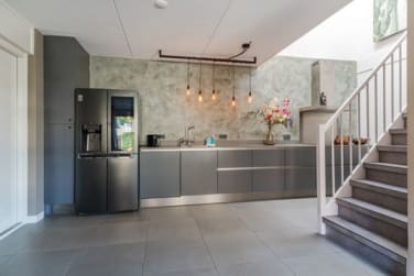 De open verbinding tussen woonkamer en keuken geeft een prettig ruimtelijk gevoel waardoor je altijd in contact blijft met elkaar.