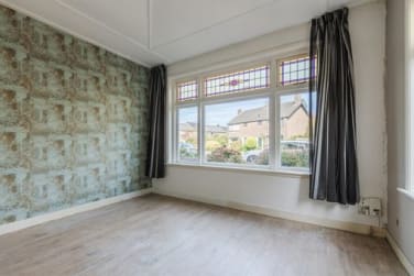 Via de hal/entree bereikt u het toilet met granitovloer en de kelder. De sfeervolle woonkamer aan de voorzijde heeft een schouw met aansluiting voor een pelletkachel. De achterkamer beschikt over een gashaard en sluit aan op de dichte keuken, voorzien van een eenvoudige keukenopstelling. Een leuk detail: het originele glas-in-lood is nog prachtig bewaard gebleven en geeft de woning extra karakter.