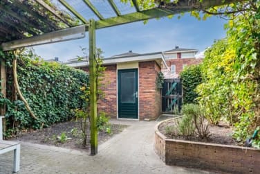 Via openslaande deuren bereik je de fraai aangelegde en goed verzorgde achtertuin. Deze ligt op het zonnige zuidwesten en vormt een prachtig verlengstuk van de woning. Hier geniet je in alle rust van lange, zonnige dagen en sfeervolle avonden. In de tuin bevindt zich tevens een stenen schuur voorzien van elektra.