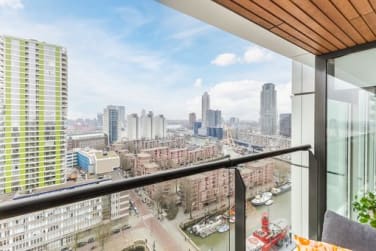 Een fantastisch en kleurrijk appartement van 106 m2 op de 19e etage in het centrum van Rotterdam met adembenemend uitzicht over de geweldige skyline. Je raakt niet uitgekeken!