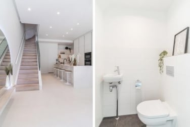 Een separaat hangtoilet en plafondhoge deuren completeert de voorzieningen op deze verdieping.