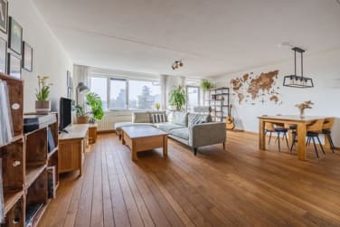 De woonkamer is ruim en aangenaam licht dankzij de grote raampartijen. Vanuit de woonkamer heb je directe toegang tot het eerste balkon, gelegen op het Westen. Het balkon heeft een oppervlakte van ca.5m² en biedt voldoende ruimte voor een comfortabel zitje, waar je heerlijk kunt genieten van de middag en avondzon. Daarnaast is de woonkamer voorzien van elektrisch bedienbare zonwering, wat zorgt voor extra comfort op zonnige dagen.