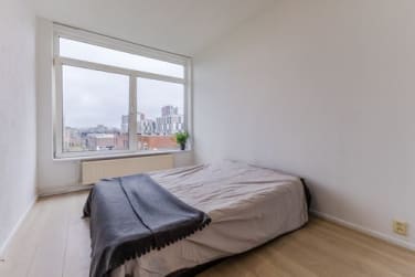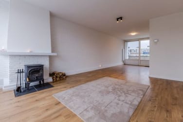 De woonkamer is over de gehele lengte van het appartement. Fijne grote ramen aan de voorkant waar veel licht naar binnen kom en je lekker ver weg kunt kijken richting de Euromast! Er is een ruime zithoek met openhaard. Een perfect plek om hier te gaan ontspannen of gezellig samen te zitten met familie en vrienden. De woonkamer loopt door naar achteren waar genoeg ruimte is voor een grote eettafel en heeft toegang naar een zonnig balkon in de ochtend.
