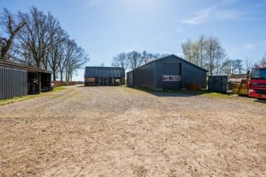 Verder staat op het terrein een grote schuur van circa 21 x 8 meter (bouwjaar 2013), damwandplaten, geïsoleerd dak, krachtstroom en 21 zonnepanelen (2017).