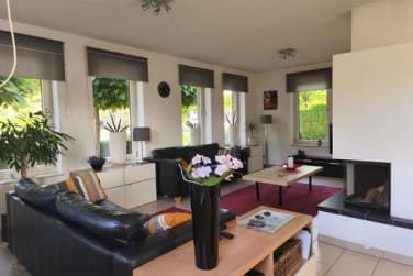 De woonkamer - met 2 openslaande terrasdeuren - is een zgn doorzon kamer van waaruit er uitzicht is op zowel het vaarwater aan de voorkant als op de achtertuin. De in de woonkamer aanwezige en goed functionerende houtkachel met buitenbeluchting en warmtevasthoudende ommanteling heeft een traditioneel gemetselde schoorsteen.
