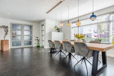 Via de ruime hal/entree met toilet en trapopgang bereik je middels dubbele deuren de lichte woon-/eetkamer.