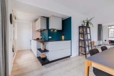 De open keuken sluit naadloos aan op de woonkamer en is voorzien van diverse inbouwapparatuur. Vanuit de keuken bereikt u het tweede balkon aan de voorzijde, gelegen op het zuidoosten. Ideaal voor een kop koffie in de ochtend- en middagzon.