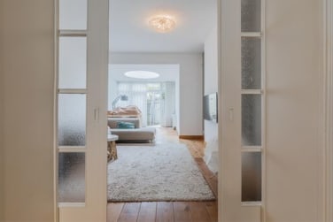 Begane grond: De entree is fraai, authentiek met een originele hardstenen vloer en een grote houten trap naar de verdiepingen. Meterkast (met glasvezelaansluiting) naast de voordeur. Toilet naast de kelderdeur. De keuken in landhuisstijl is volledig operationeel. De woonkamer bestaat in voorste gedeelte uit eetkamergedeelte met schuifdeur naar groot zitkamergedeelte met blikvangende lichtkoepel. Aansluitend daarachter de achtertuin, buitenberging met dakterras.