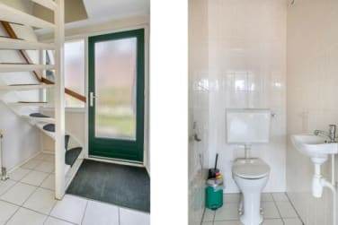 Het toilet en de badkamer zijn te bereiken vanuit de hal. De badkamer is voorzien van een douchevoorziening en een, wastafel. Tevens vindt u hier de 1e slaapkamer.