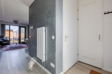 De begane grond is praktisch ingedeeld en verzorgd afgewerkt. De badkamer is keurig en tijdloos uitgevoerd en beschikt over een douche, modern wastafelmeubel, toilet en een elektrische designradiator voor extra comfort.