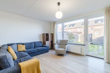 Entree met hal, meterkast en toilet. Vanuit de hal bereik je de lichte woonkamer met open keuken. De woonkamer heeft een prettige leefruimte en biedt toegang tot de achtertuin. De open keuken zorgt voor een ruimtelijke en functionele indeling van de woonruimte.