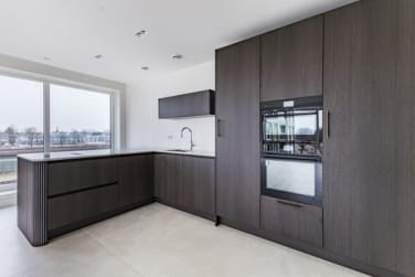 En dan de living met open keuken, wauw! Omdat dit appartement gelegen is op de hoek zijn er veel raampartijen die zorgen voor veel natuurlijk daglicht. De keuken is hip, trendy en helemaal van deze tijd, Voorzien van luxe inbouwapparatuur zoals, Quooker, kookplaat met ingebouwde afzuiging, vaatwasser koel en vrieskast. De fraaie ronding maakt deze keuken uniek. Dit is de plek om lekker aan de bar gezamenlijk te koken onder het genot van een drankje en fijne gesprekken met je vrienden. Vanuit de woonkamer heb je aan beide kanten een fraai weids uitzicht!