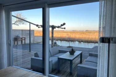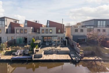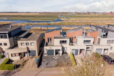 Hoekwoning op EIGEN GROND met vrij uitzicht over het Guisveld, dakterrassen en eigen steiger